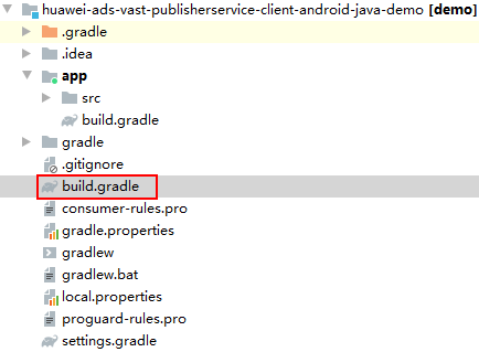 打开Android工程应用级根目录下的"app/proguard-rules.pro"混淆配置文件,添加如下两行代码,加入排除HUAWEI Ads SDK的混淆配置。