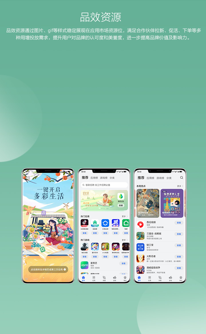 华为应用市场作为全球前三大应用分发平台之一,持续助力合作伙伴高效分发,实现用户高质量增长。华为应用市场应用推广面向合作伙伴提供精准、优质、高效的用增服务,涵盖流量资源、产品功能、赋能权益及营销方案,助力合作伙伴快速获量增长,实现商业成功。