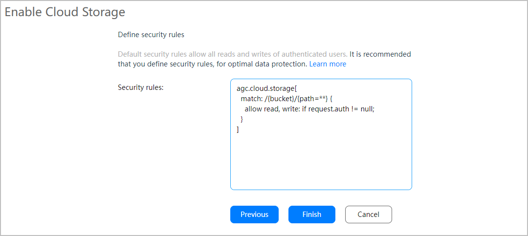 Before integrating the Cloud Storage SDK, you need to enable Cloud Storage in AppGallery Connect.