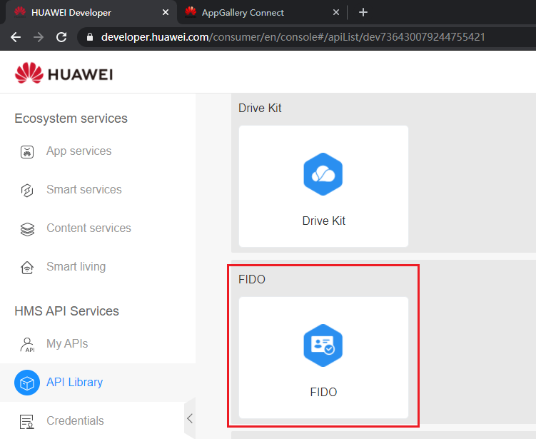 On the API Library page, click FIDO.