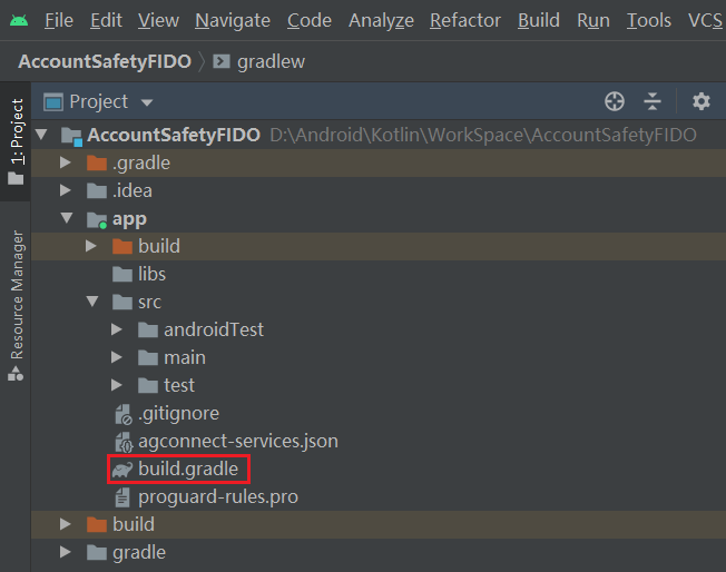 Open the build.gradle file in the app directory.
