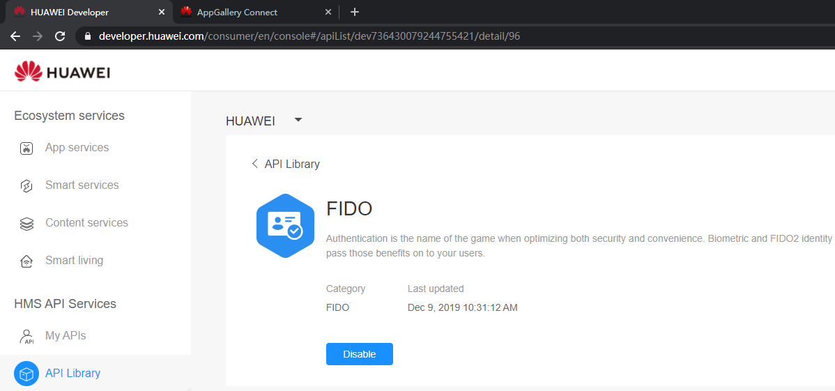 Sign in to AppGallery Connect. Go to HMS API Services > API Library and select the API you wish to enable.