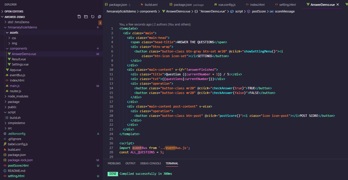 In this section, you will try to build a demo with the question answering function to learn how to use the main APIs of Analytics Kit. We have prepared the code for you, meaning you only need to follow the instructions in each step below to learn how to use Analytics Kit to report the events you are interested in, such as answering questions, calculating scores, and setting user attributes.