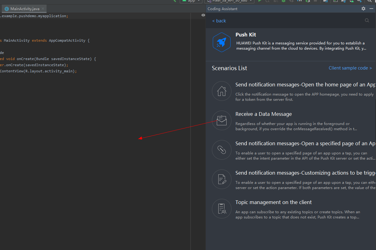 Use HMS Toolkit to call the APIs of Push Kit and debug your app.