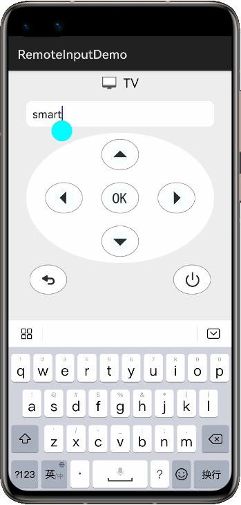 Related click events are bound when the input app on the mobile phone is started and the screen is initialized. The input app on the mobile phone can perform the following control operations: Up, Down, Left, Right, OK, Back, and Close.