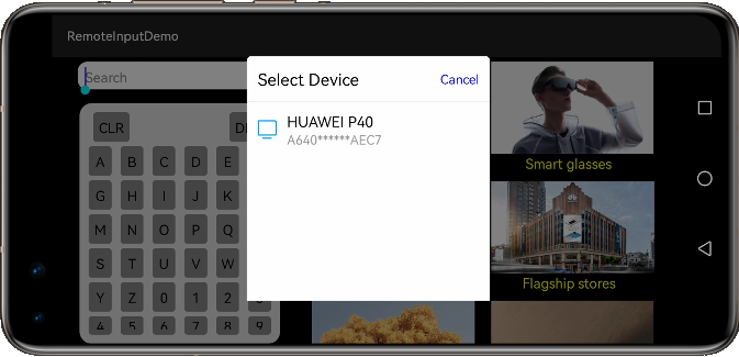 After you click the search box on the TV home screen, a dialog box is displayed (shown in Figure 2), asking you to select a mobile phone. After you select a mobile phone, the corresponding mobile phone immediately starts the input app screen. The core code for starting the input app screen on the mobile phone is as follows: