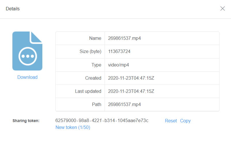 Step 3. Click View details and copy the sharing token file path. Save this path in Cloud DB database.