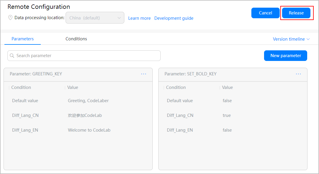 AppGallery Connect Remote Configuration allows you to manage parameters online. With the service, you can change the behavior and appearance of your app online without requiring users to update the app.